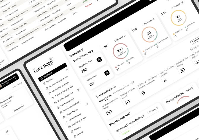 The Love Hope Company, a platform for booking therapy sessions, faced significant issues with their existing system, which featured a poor UI/UX design and a slow, bug-ridden interface.